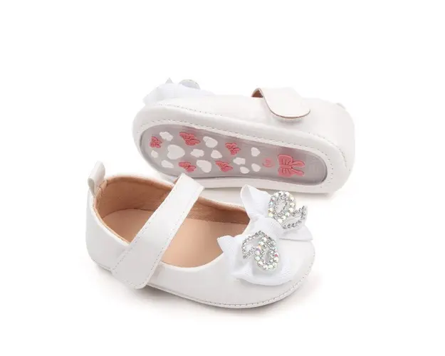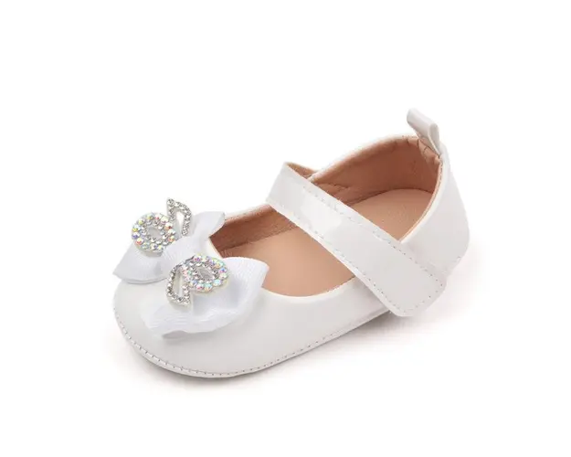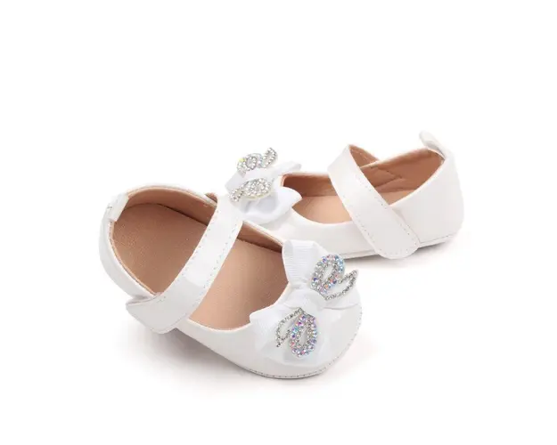 Pantofiori cu fundita cu strasuri, albi, din lac