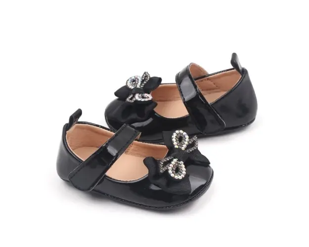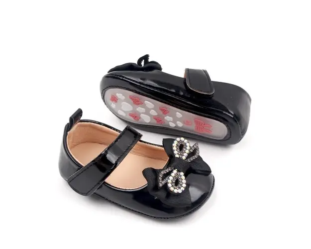 Marimi: 0-3 luni (lungimea talpitei: la interior - 10 cm; la exterior - 10,5 cm) 3-6 luni (lungimea talpitei: la interior - 10,5 cm; la exterior - 11 cm) 6-9 luni (lungimea talpitei: la interior - 11,5 cm; la exterior - 12 cm) Pantofiori pentru fetite, din material tip piele ecologica lacuita, cu o fundita cu strasuri aplicata in fata. Se inchid cu bareta cu arici intr-o parte. Culoare: negru Talpa: cauciuc moale antiderapant. Sunt ideali pentru tinutele de ocazie ale micutelor domnisoare. Produsul cu denumirea Pantofiori cu fundita cu strasuri, negri, din lac face parte din brandul Eurobaby, se afla in categoria Tetine si subcategoria