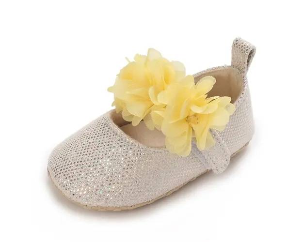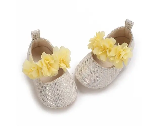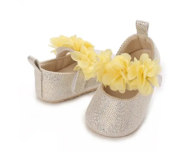 Pantofiori ivoire metalizat cu floricele galbene