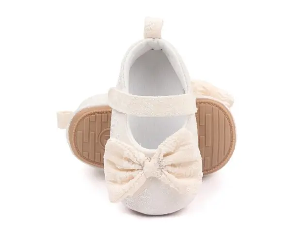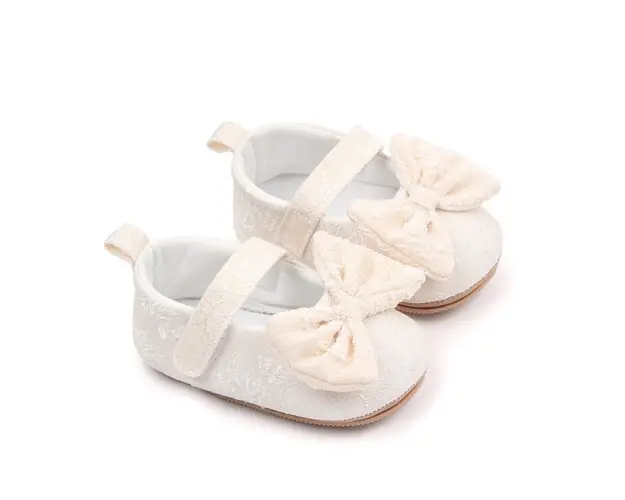 Marimi: 3-6 luni (lungimea talpitei: la interior - 10,5 cm; la exterior - 11 cm) 6-9 luni (lungimea talpitei: la interior - 11,5 cm; la exterior - 12 cm) 9-12 luni (lungimea talpitei: la interior - 12,5 cm; la exterior - 13 cm) Pantofiori pentru fetite din material textil, cu broderie si cu o funda aplicata in fata. Se inchid cu bareta cu arici intr-o parte. Culoare: ivoire Talpa: cauciuc moale si flexibil Produsul cu denumirea Pantofiori ivoire pentru fetite - Silky face parte din brandul Eurobaby, se afla in categoria Tetine si subcategoria