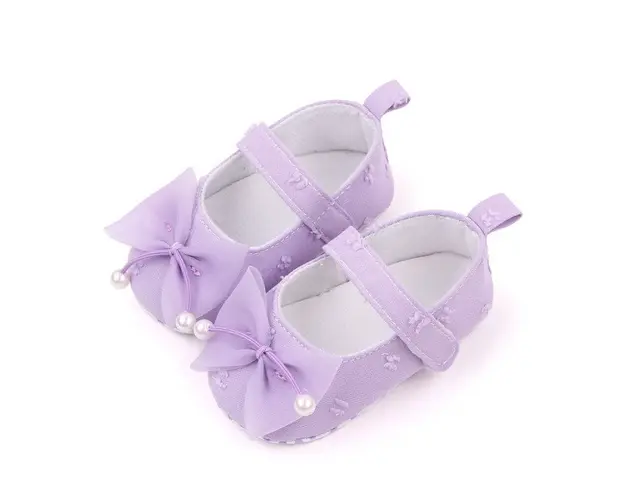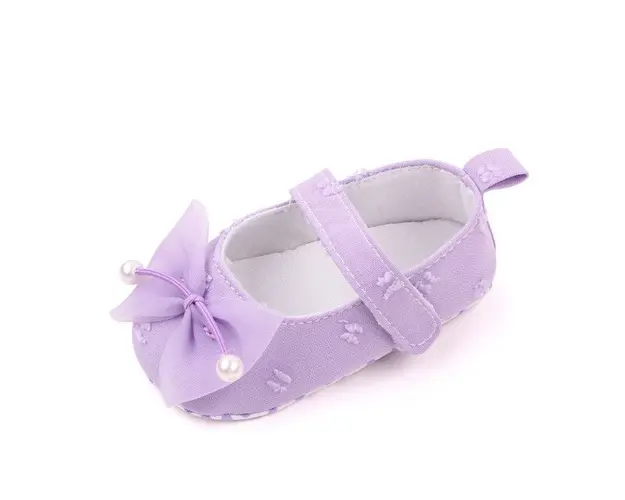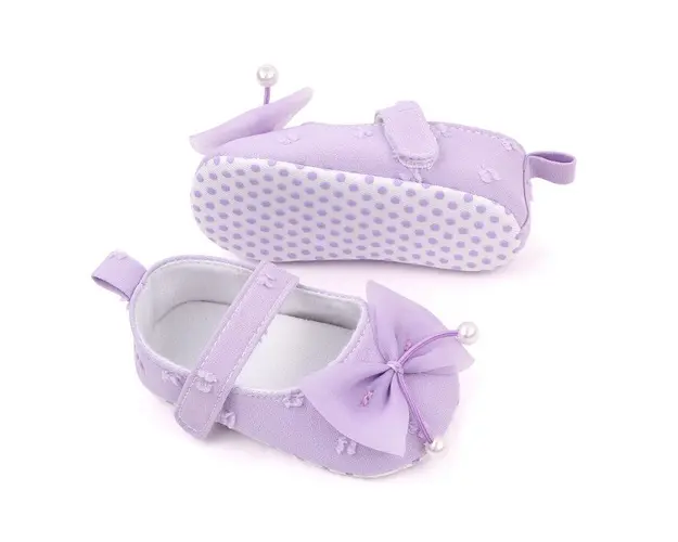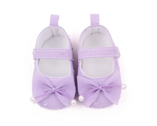Marimi: 3-6 luni (lungimea talpitei: la interior - 10,5 cm; la exterior - 11 cm) 6-9 luni (lungimea talpitei: la interior - 11,5 cm; la exterior - 12 cm) 9 -12 luni (lungimea talpitei: la interior - 12,5 cm; la exterior - 13 cm) Pantofiori pentru fetite din material textil cu o fundita din tulle aplicata in fata. Se inchid cu bareta cu arici intr-o parte. Culoare: lila Talpa: din material textil cu inscriptie antiderapanta. Produsul cu denumirea Pantofiori lila cu fundita din tulle face parte din brandul Eurobaby, se afla in categoria Tetine si subcategoria