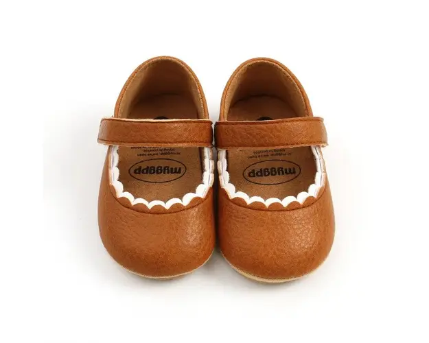 Marimi: 3-6 luni (lungimea talpitei: la interior - 10,5 cm; la exterior - 11 cm) 6-9 luni (lungimea talpitei: la interior - 11,5 cm; la exterior - 12 cm) 9 -12 luni (lungimea talpitei: la interior - 12,5 cm; la exterior - 13 cm) Pantofiori pentru fetite din material tip piele ecologica, cu bordura alba. Se inchid cu bareta cu arici intr-o parte. Culoare: maro Talpa: cauciuc antiderapant, moale si flexibil. Produsul cu denumirea Pantofiori maro cu bordura alba pentru fetite face parte din brandul Eurobaby, se afla in categoria Tetine si subcategoria