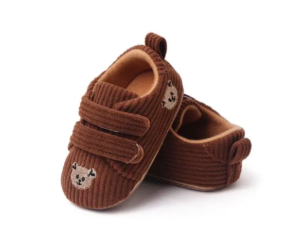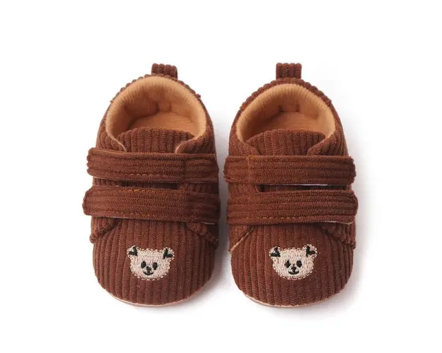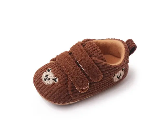 Marimi: 3 -6 luni ( lungime talpita la interior 10,5 cm, lungime talpita la exterior 11 cm) 6-9 luni ( lungime talpita la interior 11,5 cm, lungime talpita la exterior 12 cm) 9-12 luni (lungime talpita la interior 12,5 cm, lungime talpita la exterior 13 cm) Pantofiori pentru baietei, din reiat, cu un ursulet brodat in fata, se inchid cu bareta cu arici intr-o parte. Culoare: maro Material: textil Talpa: cauciuc moale antiderapant Produsul cu denumirea Pantofiori maro din reiat - Teddy face parte din brandul Eurobaby, se afla in categoria Barbie si subcategoria