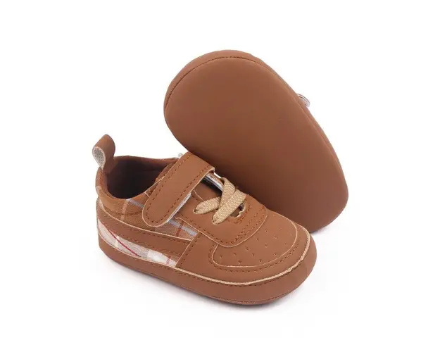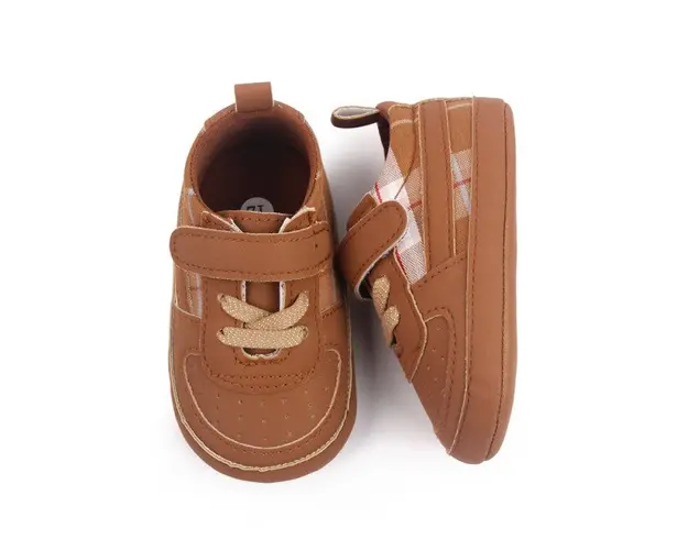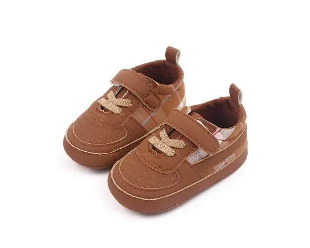 Marimi: 3 -6 luni ( lungime talpita la interior 10,5 cm, lungime talpita la exterior 11 cm) 6-9 luni ( lungime talpita la interior 11,6 cm, lungime talpita la exterior 12 cm) 9-12 luni (lungime talpita la interior 12,7 cm, lungime talpita la exterior 13 cm) Pantofiori pentru bebelusi, din material textil cu insertie de material tip piele ecologica, cu imprimeu in carouri in laterale, se inchid cu sireturi din elastic si bareta cu arici intr-o parte. Culoare: maro Talpa: din material tip piele ecologica Produsul cu denumirea Pantofiori maro pentru baietei - Plaid face parte din brandul Eurobaby, se afla in categoria Barbie si subcategoria