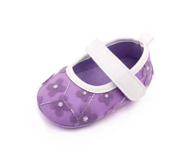 Marimi: 3-6 luni (lungimea talpitei: la interior - 10,5 cm; la exterior - 11 cm) 6-9 luni (lungimea talpitei: la interior - 11,5 cm; la exterior - 12 cm) 9 -12 luni (lungimea talpitei: la interior - 12,5 cm; la exterior - 13 cm) Pantofiori pentru fetite din material textil, cu floricele aplicate. Se inchid cu bareta cu arici intr-o parte. Culoare: mov cu insertii albe Talpa: din material textil cu inscriptie antiderapanta. Produsul cu denumirea Pantofiori mov cu floricele pentru fetite face parte din brandul Eurobaby, se afla in categoria Tetine si subcategoria