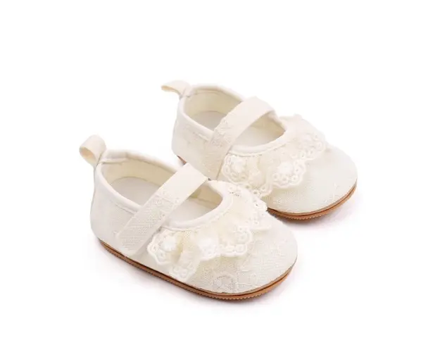 Pantofiori pentru bebelusi, ivoire cu danteluta