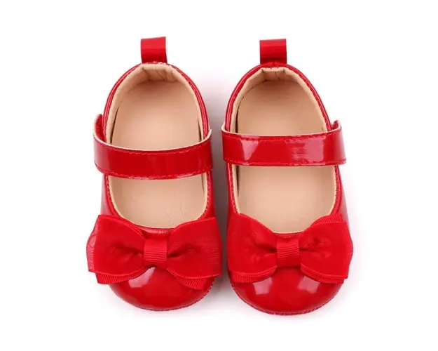 Marimi: 0-3 luni (lungimea talpitei: la interior - 10 cm; la exterior - 10,5 cm) 3-6 luni (lungimea talpitei: la interior - 10,5 cm; la exterior - 11 cm) 6-9 luni (lungimea talpitei: la interior - 11,5 cm; la exterior - 12 cm) Pantofiori pentru fetite, din material tip piele ecologica lacuita, cu o fundita din tulle aplicata in fata. Se inchid cu bareta cu arici intr-o parte. Culoare: rosu Talpa: cauciuc moale antiderapant. Produsul cu denumirea Pantofiori rosii din lac cu fundita - Elegant face parte din brandul Eurobaby, se afla in categoria Tetine si subcategoria