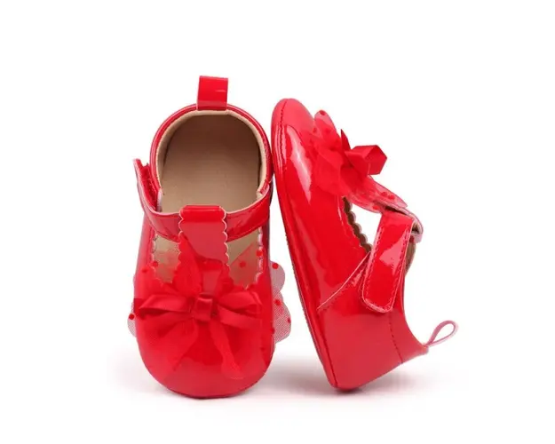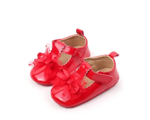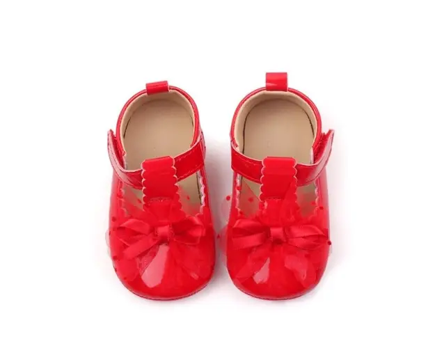 Marimi: 0-3 luni (lungimea talpitei: la interior - 10 cm; la exterior - 10,5 cm) 3-6 luni (lungimea talpitei: la interior - 10,5 cm; la exterior - 11 cm) 6-9 luni (lungimea talpitei: la interior - 11,5 cm; la exterior - 12 cm) Culoare: rosu Material: piele ecologica lacuita Inchidere: bareta cu arici Talpa: cauciuc moale antiderapant. Pantofiori pentru bebelusi, perfecti pentru evenimente speciale, oferind un design elegant si confortabil. Realizati din material lacuit, acestia aduc un plus de rafinament tinutelor celor mici. Culoarea rosu intens atrage atentia, iar fundita delicata din plasa adauga un detaliu chic si feminin. Inchiderea cu scai asigura o fixare rapida si usoara, iar talpa moale este ideala pentru primii pasi. Acesti pantofi sunt potriviti pentru diverse ocazii, precum botezuri, aniversari sau petreceri, combinand stilul cu confortul necesar pentru cei mici. Produsul cu denumirea Pantofiori rosii din piele ecologica lacuita cu fundita face parte din brandul Eurobaby, se afla in categoria Tetine si subcategoria