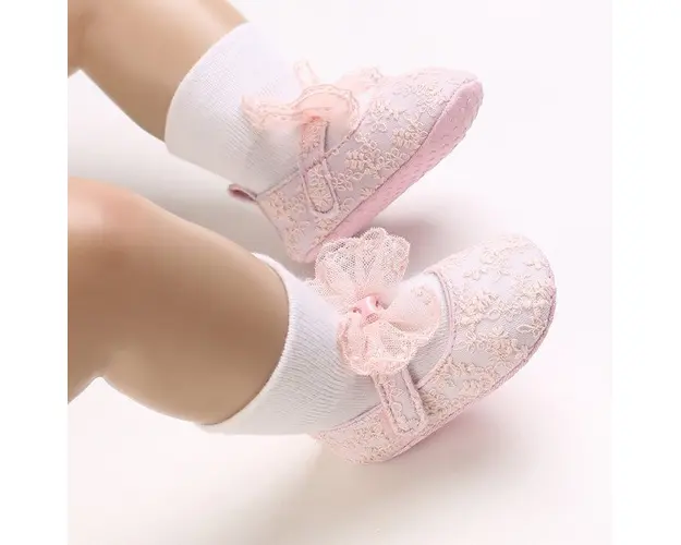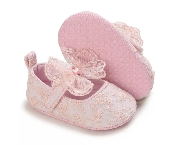 Marimi: 3-6 luni (lungimea talpitei: la interior - 10,5 cm; la exterior - 11 cm) 6-9 luni (lungimea talpitei: la interior - 11,5 cm; la exterior - 12 cm) 9 -12 luni (lungimea talpitei: la interior - 12,5 cm; la exterior - 13 cm) Pantofiori pentru fetite din material textil brodat. Se inchid cu bareta cu arici intr-o parte, pe care este aplicata o fundita, pentru un plus de eleganta. Culoare: roz Talpa: din material textil cu inscriptie antiderapanta. Produsul cu denumirea Pantofiori roz cu broderie si fundita face parte din brandul Eurobaby, se afla in categoria Tetine si subcategoria