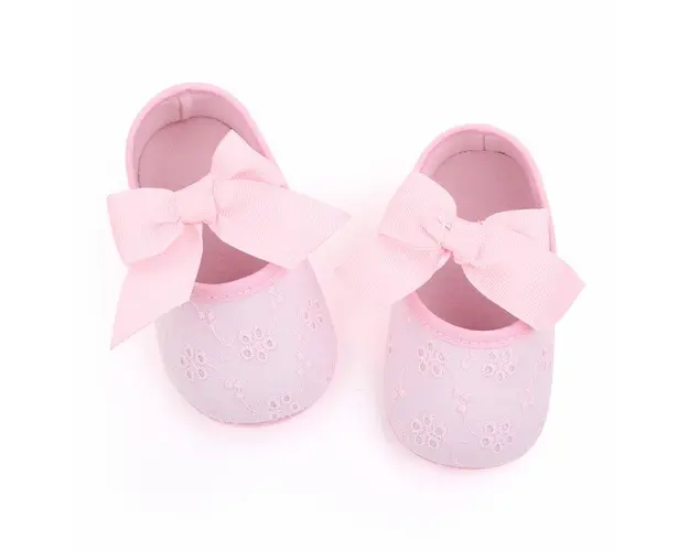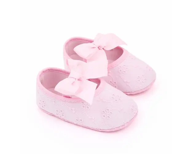 Pantofiori roz cu floricele brodate si fundita