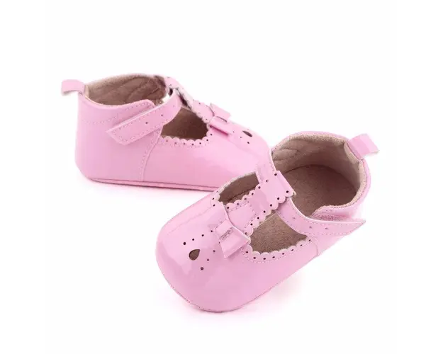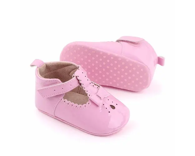 Marimi: 3-6 luni (lungimea talpitei: la interior - 10,5 cm; la exterior - 11 cm) 6-9 luni (lungimea talpitei: la interior - 11,5 cm; la exterior - 12 cm) 9 -12 luni (lungimea talpitei: la interior - 12,5 cm; la exterior - 13 cm) Pantofiori pentru fetite din material tip piele ecologica lacuita cu o fundita mica aplicata in fata. Se inchid cu bareta cu arici intr-o parte. Culoare: roz Talpa: din material textil cu inscriptie antiderapanta. Produsul cu denumirea Pantofiori roz lacuiti - Sunny face parte din brandul Eurobaby, se afla in categoria Tetine si subcategoria