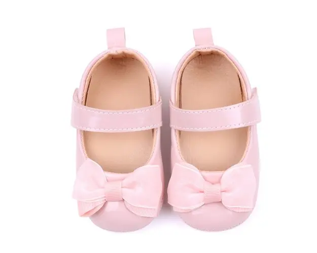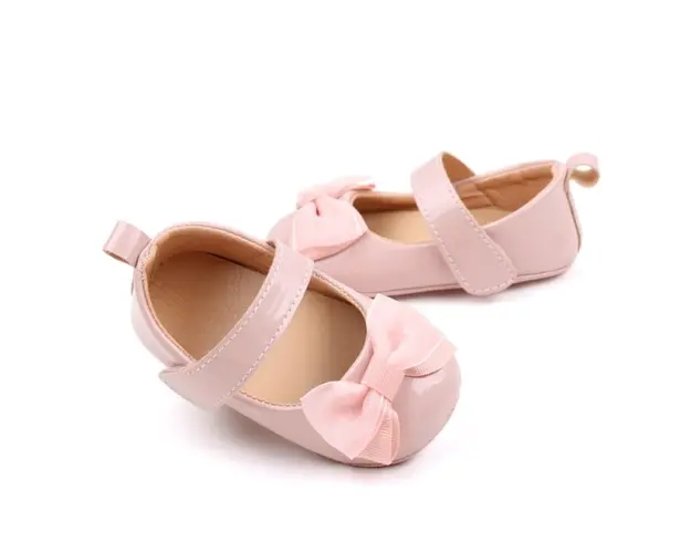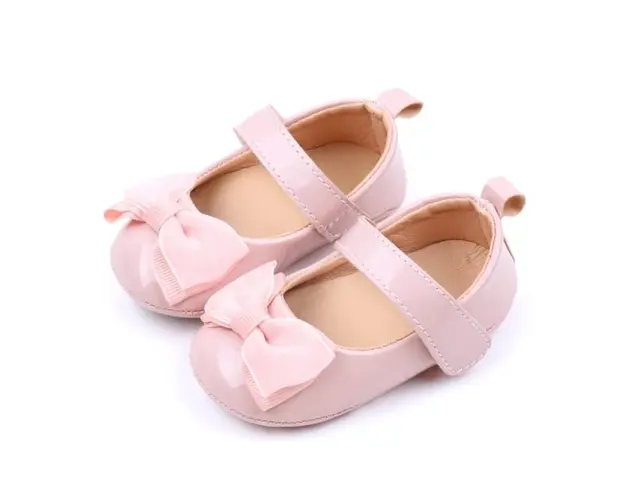 Pantofiori roz luciosi pentru bebelusi cu funda