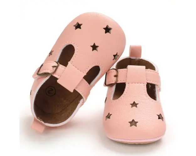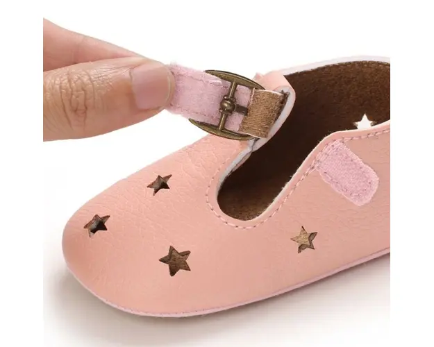 Marimi: 3 -6 luni (lungime talpita la interior 10,5 cm, lungime talpita la exterior 11 cm) 6-9 luni (lungime talpita la interior 11,6 cm, lungime talpita la exterior 12 cm) 9-12 luni (lungime talpita la interior 12,7 cm, lungime talpita la exterior 13 cm) Culoare: roz Material: piele ecologica Inchidere: bareta cu arici Talpa: cauciuc moale, antiderapant Pantofiori pentru bebelusi din piele ecologica roz, decorati cu stelute decupate, perfecti pentru tinutele de zi cu zi sau ocazii speciale. Designul modern si jucaus ii face atractivi, iar materialele de calitate asigura confortul picioruselor delicate. Pantofiorii dispun de o curelusa cu inchidere cu arici, cu o catarama decorativa pentru o fixare sigura si usoara. Talpa este moale si flexibila, ideala pentru primii pasi ai bebelusului. Acesti pantofiori sunt potriviti atat pentru fetite, adaugand un plus de stil si eleganta oricarei tinute. Produsul cu denumirea Pantofiori roz cu stelute decupate face parte din brandul Eurobaby, se afla in categoria Tetine si subcategoria