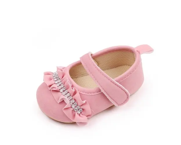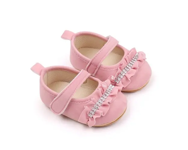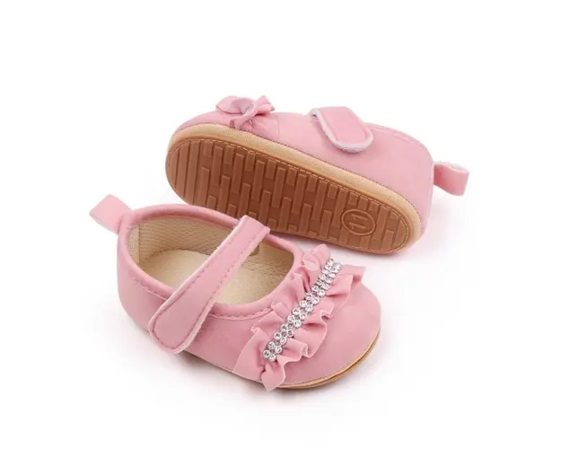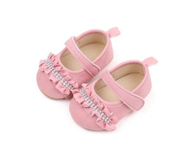 Marimi: 3 -6 luni (lungime talpita la interior 10,5 cm, lungime talpita la exterior 11 cm) 6-9 luni (lungime talpita la interior 11,6 cm, lungime talpita la exterior 12 cm) 9-12 luni (lungime talpita la interior 12,7 cm, lungime talpita la exterior 13 cm) Culoare: roz Material: tip piele ecologica intoarsa Inchidere: bareta cu arici Talpa: cauciuc moale, antiderapant Pantofiori roz eleganti pentru bebelusi, ideali pentru ocazii speciale, confectionati din material de calitate superioara pentru confort sporit. Designul este completat de volanase delicate si un rand de strasuri stralucitoare, oferindu-le un aspect rafinat. Inchiderea cu bareta velcro asigura o potrivire perfecta si usurinta in incaltare. Talpa antiderapanta din cauciuc moale ofera siguranta la fiecare pas. Acesti pantofi sunt potriviti pentru evenimente formale, sedinte foto sau pur si simplu pentru a adauga un strop de eleganta tinutelor bebelusului tau. Produsul cu denumirea Pantofiori roz cu strasuri si volanase face parte din brandul Eurobaby, se afla in categoria Tetine si subcategoria