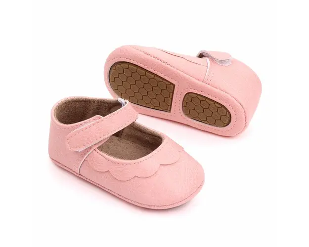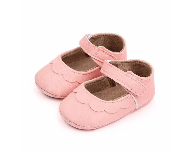 Marimi: 3-6 luni (lungimea talpitei: la interior - 10,5 cm; la exterior - 11 cm) 6-12 luni (lungimea talpitei: la interior - 11,5 cm; la exterior - 12 cm) 12-18 luni (lungimea talpitei: la interior - 12,5 cm; la exterior - 13 cm) Pantofiori pentru fetite, din material tip piele ecologica, cu un volanas aplicat in fata. Se inchid cu bareta cu arici intr-o parte. Culoare: roz Talpa: material tip piele ecologica cu insertie de cauciuc antiderapant. Produsul cu denumirea Pantofiori roz cu volanas pentru fetite face parte din brandul Eurobaby, se afla in categoria Tetine si subcategoria