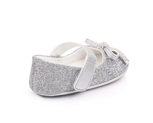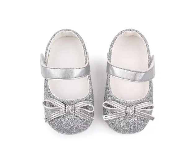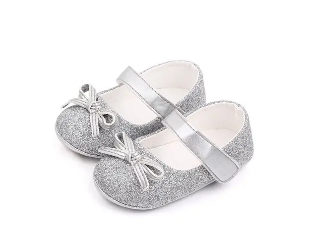 Marimi: 0-3 luni (lungimea talpitei: la interior - 10 cm; la exterior - 10,5 cm) 3-6 luni (lungimea talpitei: la interior - 10,5 cm; la exterior - 11 cm) 6-9 luni (lungimea talpitei: la interior - 11,5 cm; la exterior - 12 cm) Culoare: argintiu Material: piele ecologica Inchidere: bareta cu arici Talpa: cauciuc moale antiderapant. Pantofiorii argintii pentru bebelusi, cu design stralucitor si elegant, sunt perfecti pentru orice ocazie speciala. Decorati cu sclipici fin si o fundita delicata in fata, acest model adauga o nota de rafinament tinutei micutei tale. Bareta practica cu arici ofera o inchidere usoara si sigura, asigurand confort si stabilitate. Talpa antiderapanta, decorata cu inimioare si flori, este ideala pentru primii pasi ai bebelusului, oferind aderenta si siguranta pe orice suprafata. Materialele de calitate superioara garanteaza durabilitate si confort sporit. Produsul cu denumirea Pantofiori cu sclipici argintiu si fundita face parte din brandul Eurobaby, se afla in categoria Tetine si subcategoria