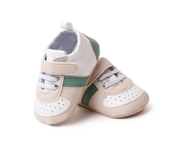 Marimi: 3-6 luni (lungimea talpitei: la interior - 10,5 cm; la exterior - 11 cm) 6-9 luni (lungimea talpitei: la interior - 11,5 cm; la exterior - 12 cm) 9-12 luni (lungimea talpitei: la interior - 12,5 cm; la exterior - 13 cm) Culoare: alb cu verde si crem Material: piele ecologica Inchidere: sireturi din elastic si bareta cu arici Talpa: textil cu inscriptie antiderapanta Pantofi sport pentru bebelusi, ideali pentru primii pasi ai micutului tau. Acest model, in culori neutre de alb, crem si verde pastel, este fabricat dintr-un material moale, asigurand confortul picioruselor delicate ale bebelusului. Designul cu inchidere velcro ofera o fixare sigura si usoara, permitand parintilor sa incalte copilul rapid si fara efort. Talpa antiderapanta moale protejeaza piciorul in timpul mersului, oferind in acelasi timp siguranta si stabilitate pe diverse suprafete. Perfecti pentru plimbarile zilnice sau pentru completarea unei tinute casual deosebite. O alegere excelenta pentru confort si stil! Produsul cu denumirea Pantofiori sport pentru bebelusi, albi cu insertii crem si verzi face parte din brandul Eurobaby, se afla in categoria Barbie si subcategoria