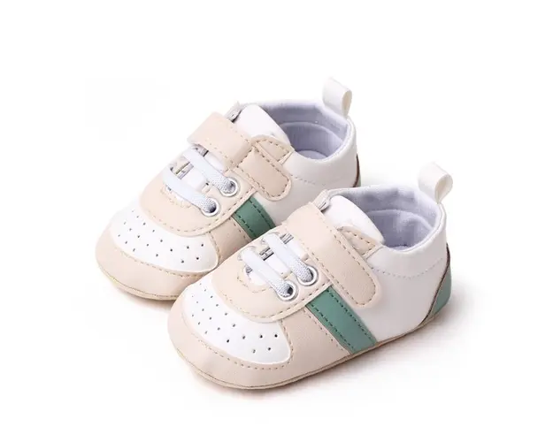 Pantofiori sport pentru bebelusi, albi cu insertii crem si verzi