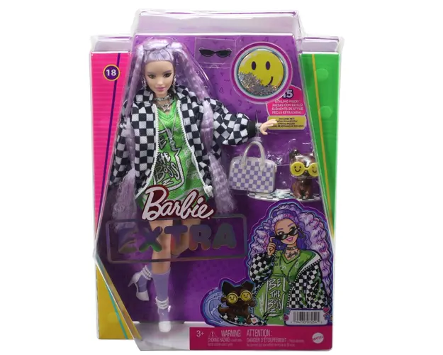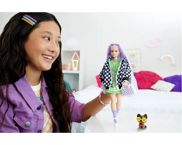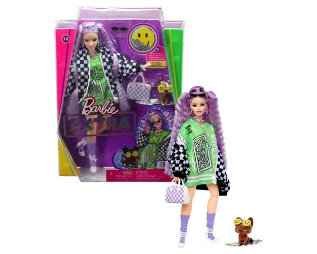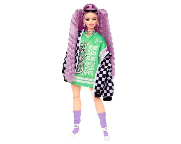Papusa Barbie Extra cu Jacheta Sport si Par Mov