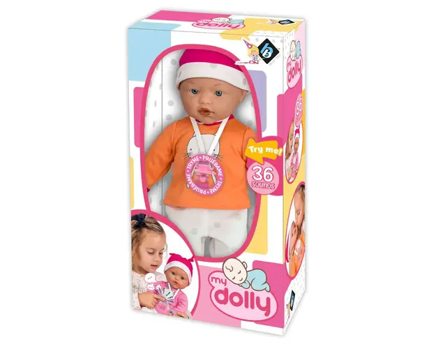 Caracteristici Papusa My Dolly 37 cm cu 36 sunete: Papusa My Dolly emite 36 de sunete realiste! Imbratiseaz-o si vei auzi vocea ei dragalasa Dolly de abia asteapta sa o ingrijesti De asemenea, include o suzeta pentru a face jocul si mai realist Poarta o bluza, pantalonasi albi si caciulita Poti sa iti alegi dintre 2 modele: bluza roz sau bluza portocalie Diverse modele Pretul este pentru o singura bucata Fiecare model se achizitioneaza separat Dimensiune aproximativa: 37 cm Produsul cu denumirea Papusa My Dolly 37 cm cu 36 sunete face parte din brandul , se afla in categoria Jucarii magnetice si subcategoria