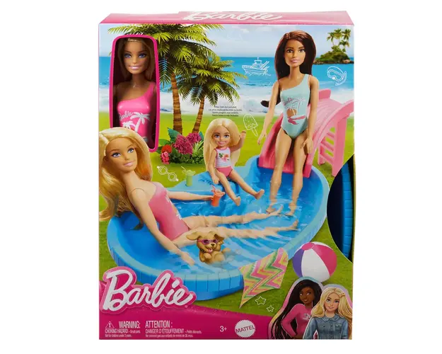 Caracteristici Papusa cu piscina Barbie Fun In The Sun: Distractia de vara te asteapta cu papusa Barbie si piscina ei! Piscina este usor de umplut si golit Ajuta-o pe Barbie sa urce pe scara si sa coboare pe tobogan, apoi relaxeaza-te in apa cu o bautura racoritoare! Papusa Barbie vine cu tot ce ar putea avea nevoie pentru o dupa-amiaza perfecta de vara: o piscina, un tobogan si accesorii precum un prosop si bauturi De la o dupa-amiaza relaxanta pana la o petrecere la piscina cu prietenii, exista atat de multe povesti de spus! Papusa Barbie este imbracata intr-un costum de baie roz dintr-o singura piesa, cu un design tropical de apus de soare Papusa Barbie nu poate sa inoate sau sa stea in picioare singura Culorile si decoratiunile pot varia Produsul cu denumirea Papusa cu piscina Barbie Fun In The Sun face parte din brandul Mattel, se afla in categoria Jucarii magnetice si subcategoria