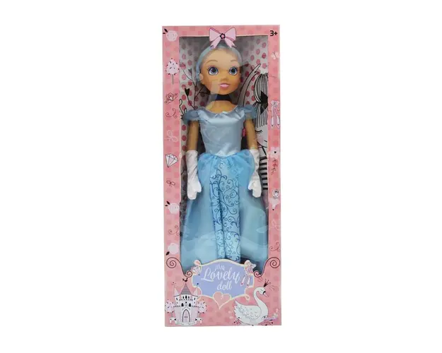 Papusa printesa Fashion Doll cu rochie albastra 80 cm