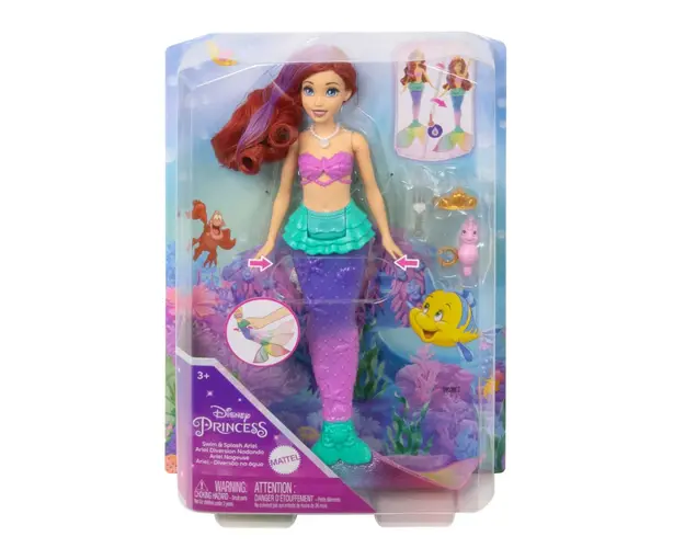 Caracteristici Papusa sirena Disney Princess Fashion Doll Ariel: Inspirata de personajul animat din desenul Disney Mica Sirena, aceasta papusa Ariel sirena are efect de schimbare a culorii Strange soldurile papusii pentru a face coada sirenei sa se miste in sus si in jos, ca si cum ar inota Copiii pot atasa calutul de mare pe mana lui Ariel pentru si mai multa distractie imaginativa Papusa isi schimba nuantele din par si de pe coada atunci cand este pusa in apa rece ca gheata Culorile din par si de pe coada revin la nuanta initiala dupa ce este pusa din nou in apa calda Include si o tiara, lantisor si o furculita pentru jocuri de rol Exact ca in film, aceasta papusa Ariel are parul lung si roscat, are o coada de sirena si poarta un top cu scoici Este cadoul perfect pentru fanele Mica Sirena Setul contine: 1 papusa 1 calut de mare 3 accesorii Mattel HPD43 Produsul cu denumirea Papusa sirena Disney Princess Fashion Doll Ariel face parte din brandul Mattel, se afla in categoria Jucarii magnetice si subcategoria