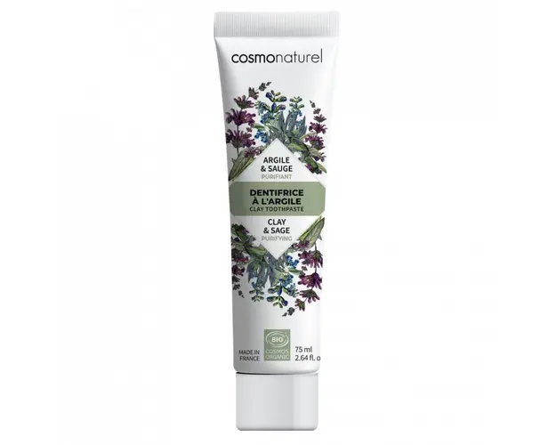 Pasta de dinti BIO pentru curatarea dintilor COSMO NATUREL cu salvie si argila este bogata in ingrediente active de purificare si remineralizare. Prezentare 75 ml.Caracteristiciaceasta pasta de dinti Produsul cu denumirea Pasta de dinti bio pentru curatarea dintilor cu argila si salvie 75 ml face parte din brandul Cosmo naturel, se afla in categoria Igiena si ingrijire si subcategoria