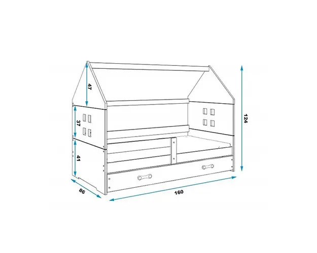 Pat copii casuta Domy alb-vernil saltea inclusa 160 x 80 cm