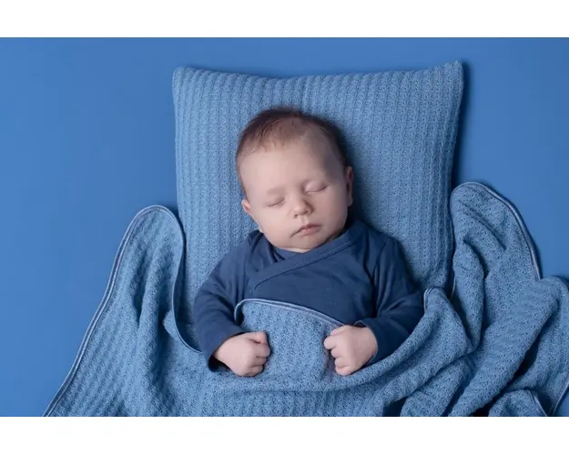 Paturica bebe tricotata bumbac 72x110 cm Puzzle Blue