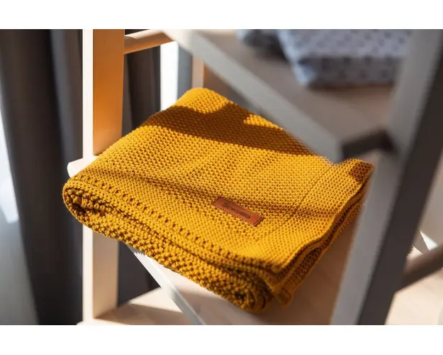 Paturica de bumbac tricotata Sensillo 100x80 cm mustar