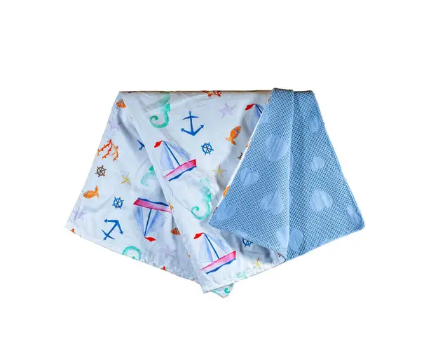 Paturica by the sea, cusuta in atelierul propriu, din bumbac 100 Oeko tex 100. Imprimeul de penbsp fata este certificat GOTS ( Global Organic Textile Standard ).nbspCe inseamna GOTSGlobal Organic Text Produsul cu denumirea Paturica by the sea 75x75 cm face parte din brandul Djeco, se afla in categoria Costume carnaval copii si subcategoria