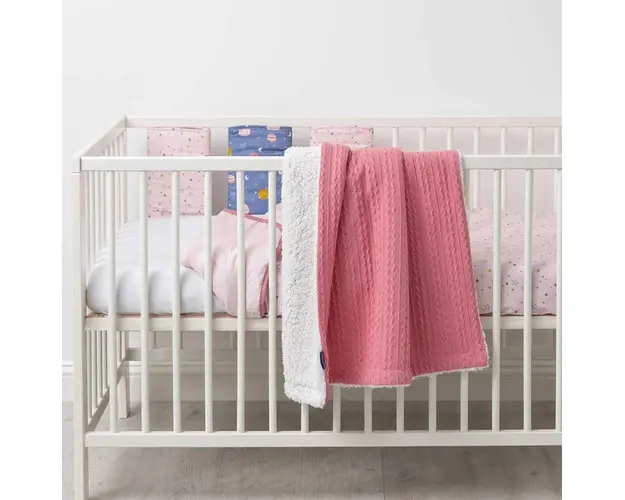 Paturica Clevamama Lux Sherpa pentru bebelusi 75 x 100 cm pink 3482