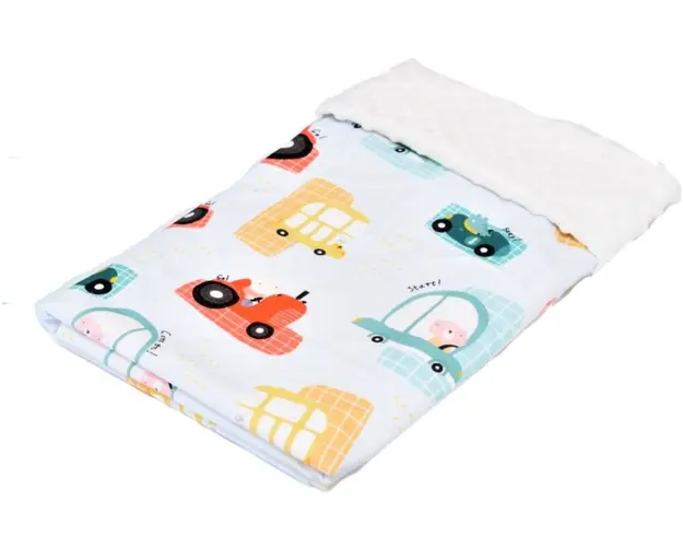 Paturica groasa detasabila model masinute si plus minky crem 100x140 cm
