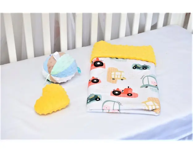 Paturica groasa detasabila model masinute si plus minky galben 100x140 cm