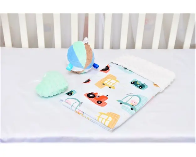 Paturica groasa nedetasabila model masinute si plus minky crem 75x100 cm