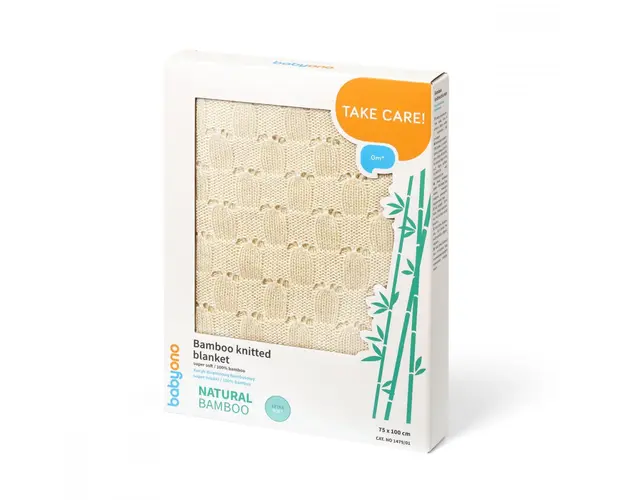 Paturica tricotata din bambus Babyono ecru