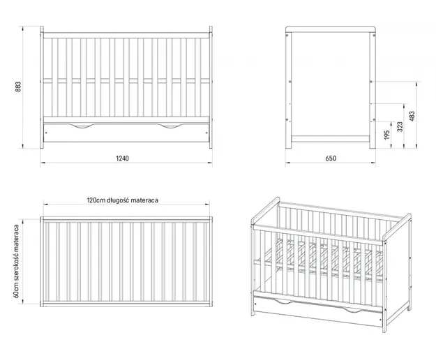 Patut din lemn 120x60 cm Nichiduta Lilia White 120x60 cm