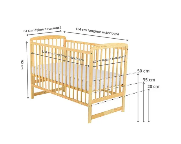 Patut din lemn Ola Babyneeds 120x60 cm din lemn de pin natur