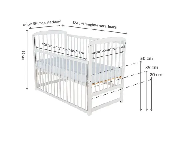 Patut din lemn Ola BabyNeeds 120x60 cm cu laterala culisanta Alb