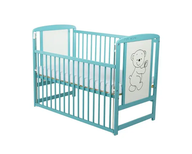 Patut din lemn Timmi BabyNeeds 120x60 cm cu laterala culisanta Mint