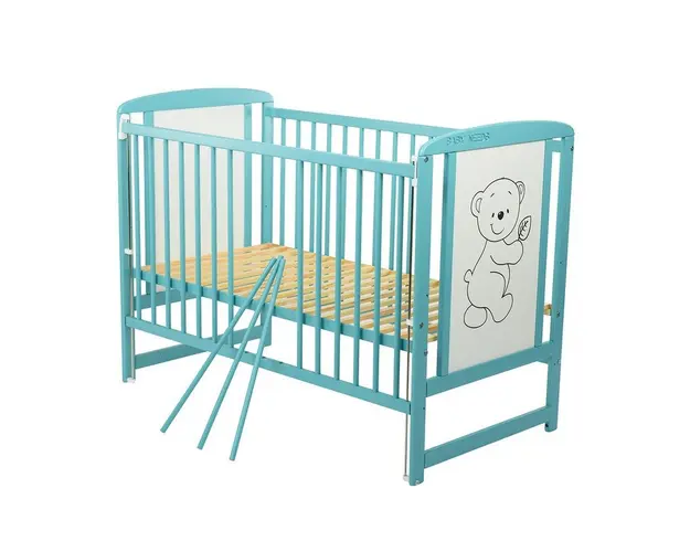 Patut din lemn Timmi BabyNeeds 120x60 cm cu laterala culisanta Mint