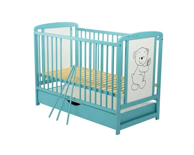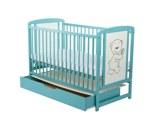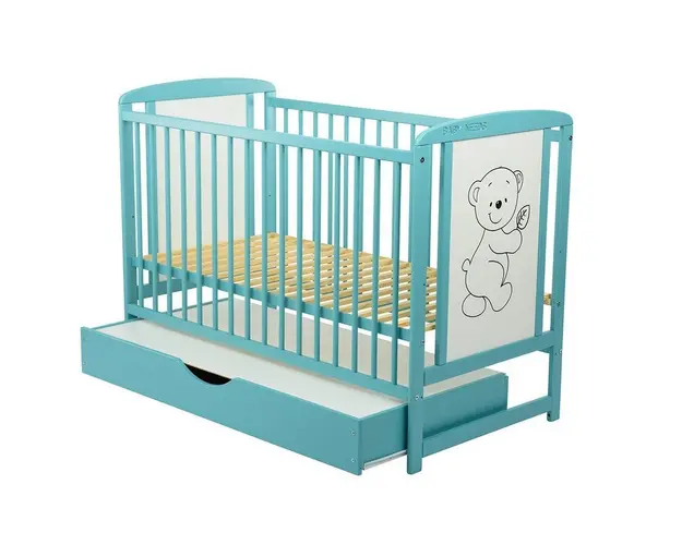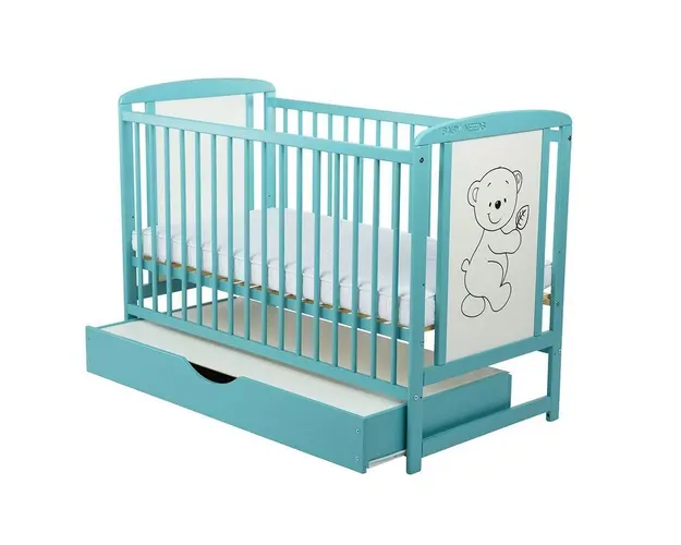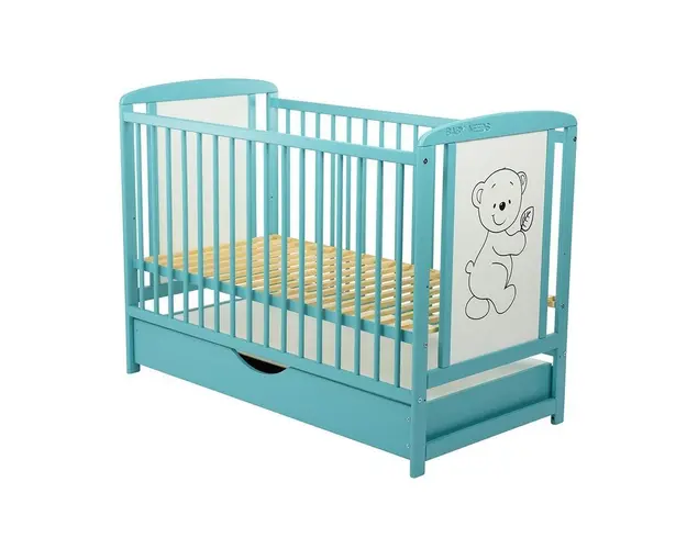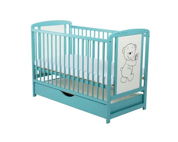 Patut din lemn Timmi BabyNeeds 120x60 cm cu sertar Mint
