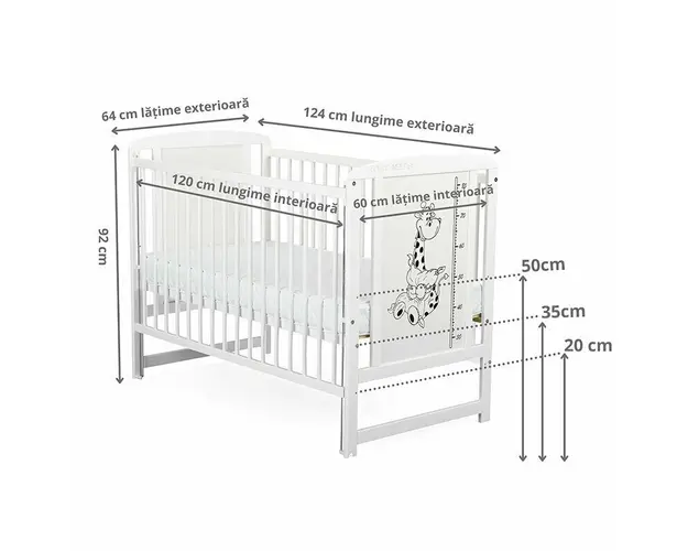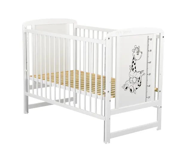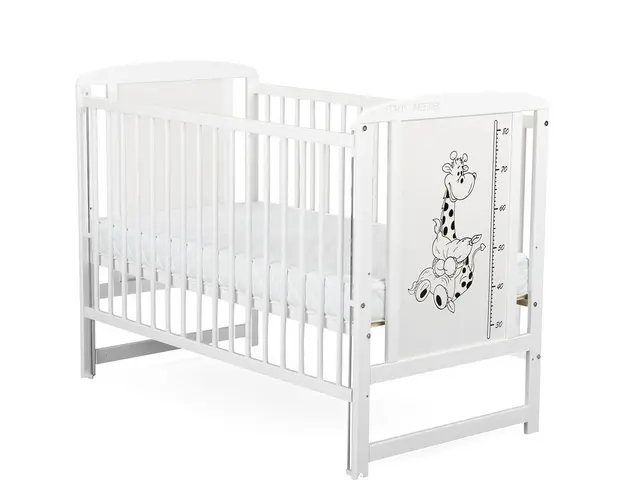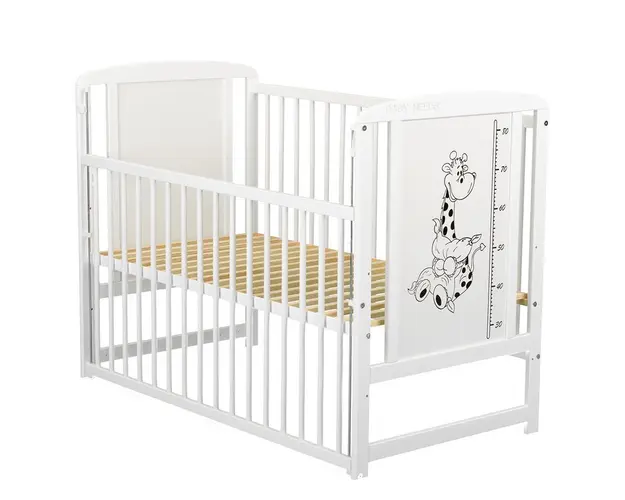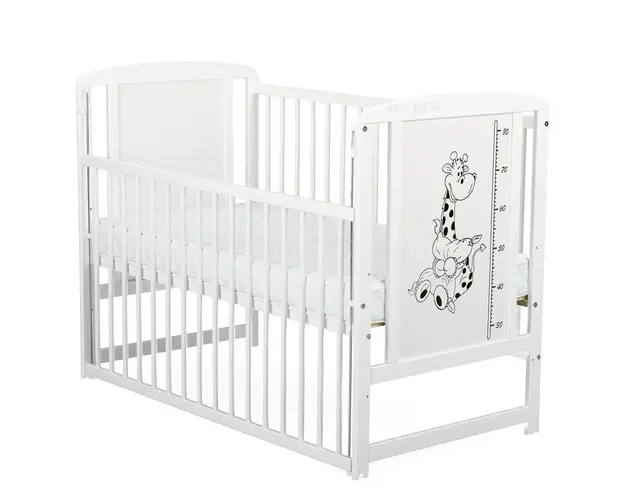 Patut din lemn Timmi BabyNeeds Girafa 120x60 cm cu laterala culisanta Alb