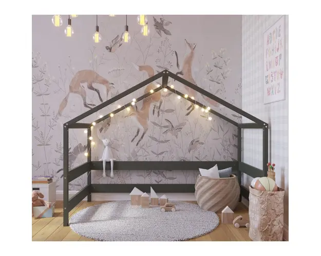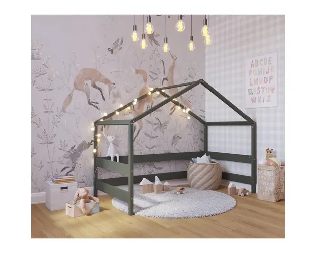Patut din lemn YappyHytte Bed transformabil in casuta de joaca 160x80 cm Verde