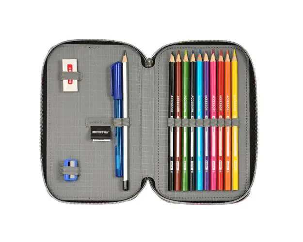 Caracteristici Penar dublu echipat 28 piese Monster High Best Boos: Penarul dublu echipat 28 piese Monster High Best Boos contine in primul compartiment 10 creionare colorate, 1 pix, 1 creion, 1 radiera si 1 ascutitoare, iar in cel de-al doilea compartiment 14 carioci colorate Material: Poliester Greutate: 375 g Capacitate volumetrica: 4 l Recomandat pentru clasele 0-IV Dimensiuni: 12.5 x 4 x 19.5 cm Produsul cu denumirea Penar dublu echipat 28 piese Monster High Best Boos face parte din brandul , se afla in categoria Seturi mobilier gradinita si subcategoria