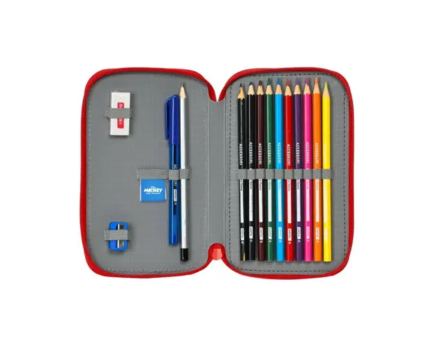 Caracteristici Penar dublu echipat Disney Mickey Mouse 28 piese: Penarul dublu echipat Mickey Mouse contine 28 piese In primul compartiment sunt: 10 creionare colorate, 1 pix, 1 creion, 1 radiera si 1 ascutitoare In cel de-al doilea compartiment contine 14 carioci colorate Material: Poliester Greutate: 375 g Capacitate volumetrica: 4 l Recomandat pentru clasele 0-IV Penarul este versatil ca utilizare si se intretine usor Dimensiuni: 12.5 x 4 x 19.5 cm Produsul cu denumirea Penar dublu echipat Disney Mickey Mouse 28 piese face parte din brandul Stamco, se afla in categoria Seturi mobilier gradinita si subcategoria