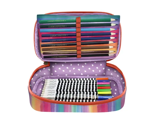 Caracteristici Penar echipat Gorjuss Be Kind To All Creatures 45 piese: Penarul echipat Gorjuss Be Kind To All Creatures are o captuseala monocroma, doua flapsuri pliabile care permit o pastrare a rechizitelor continute in ordine Penarul echipat Santoro Gorjuss Be Kind To All Creatures contine produse de calitate si te scuteste de multa alergatura prin magazinele de papetarie Recomandam acest penar echipat pentru scoala Penarul este echipat cu 45 de piese: 18 creioane colorate, 18 markere, 1 creion cu mina din grafit, 1 ascutitoare, 1 radiera, 1 raportor, 1 echer, 1 rigla, 3 pixuri culori diferite: rosu, albastru, negru Material: Poliester Recomandat copiilor din clasele 0-5 Produsul cu denumirea Penar echipat Gorjuss Be Kind To All Creatures 45 piese face parte din brandul Santoro london, se afla in categoria Seturi mobilier gradinita si subcategoria