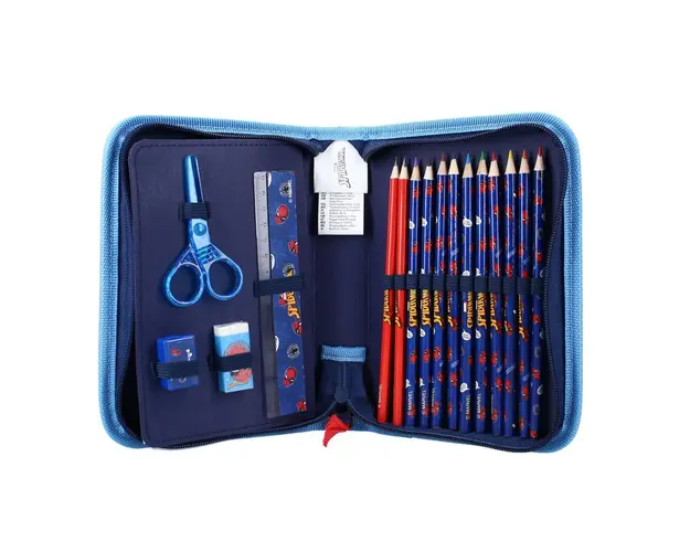 Caracteristici Penar echipat Vadobag Marvel Spiderman 21x15x4 cm: Este accesoriul perfect pentru scoala pentru fanii Spider-Man! Prevazut cu un singur compartiment impartit in doua Ofera acces rapid si usor la interior avand inchidere cu fermoar Setul contine: 10 carioci 10 creioane colorate 2 creioane obisnuite din grafit Carnetel Forfecuta Ascutitoare Radiera Rigla Dimensiuni: 21 x 15 x 4 cm Produsul cu denumirea Penar echipat Vadobag Marvel Spiderman 21x15x4 cm face parte din brandul , se afla in categoria Seturi mobilier gradinita si subcategoria