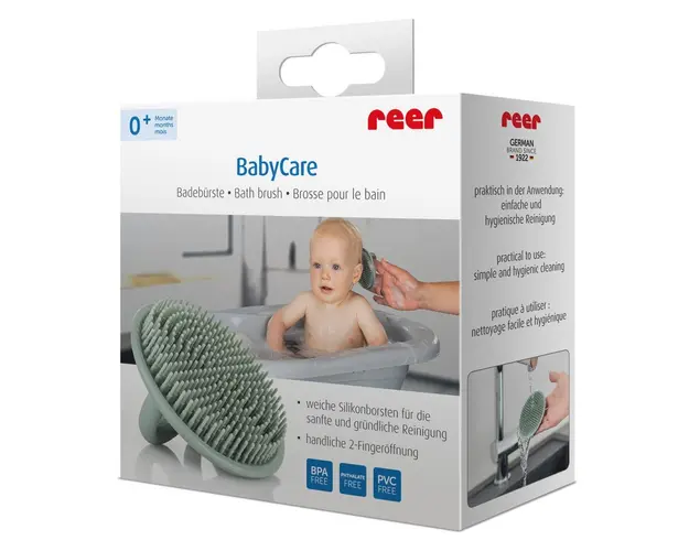 Perie de baie Reer BabyCare moale pentru bebelusi din silicon alimentar monoblo Bath Brush